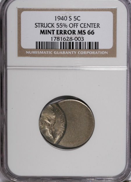 1940-S Jefferson Nickel--Struck 55% Off Center--MS66 NGC