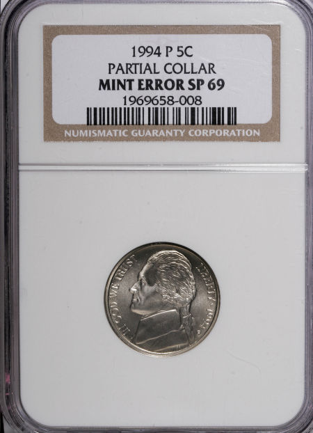 1994-P Jefferson Nickel SMS--Partial Collar--SP69 NGC