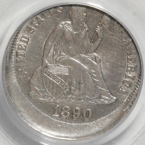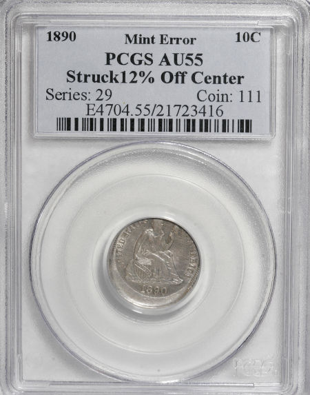 1890 Seated Dime--Struck 12% Off Center--AU55 PCGS