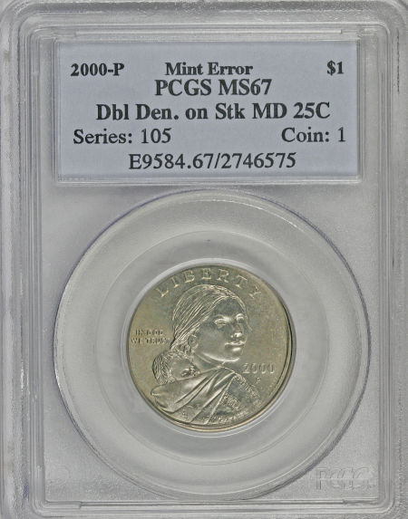 2000-P Sacagawea Dollar--Double Denomination on Struck Maryland Quarter--MS67 PCGS