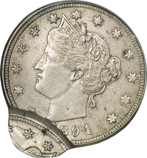 1894 Liberty Nickel--Double Struck, Second Strike 90% Off Center--MS60 PCGS