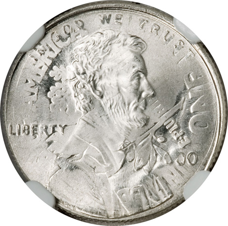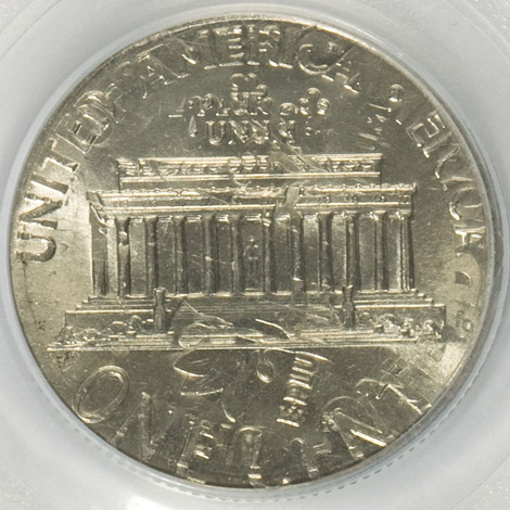 Undated Lincoln Memorial Cent--On Clad Dime Bow Tie Fragment--MS65 PCGS