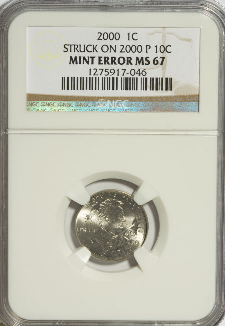 2000 1C Lincoln Cent--Struck on 2000-P Roosevelt Dime--MS67 NGC