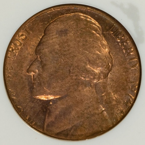 1974-D 5C Nickel--Struck on a Foreign Planchet--AU58 Red and Brown NGC