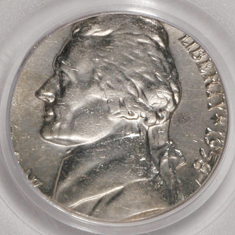 1935 5C Buffalo Nickel--Struck 15% Off Center--MS65 NGC