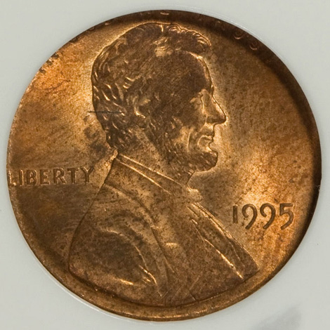 1995 1C Cent--Struck on a Foreign Planchet--MS62 Red and Brown NGC