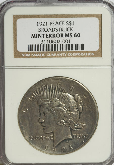 1921 $1 Peace Dollar--Broadstruck--MS60 NGC