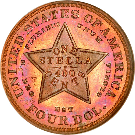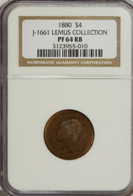 1880 $4 Coiled Hair Four Dollar, Judd-1661, Pollock-1861, Low R.7, PR64 Red and Brown NGC