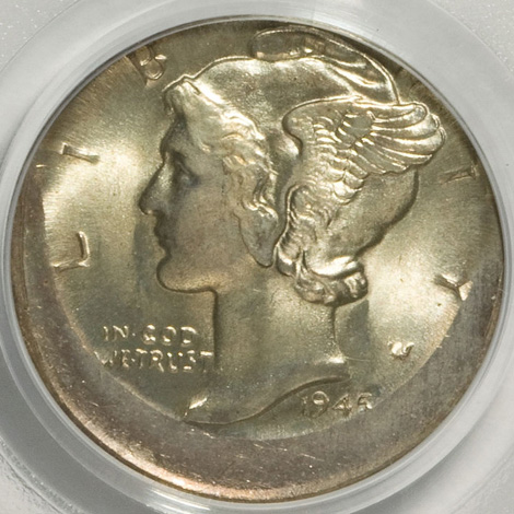 1945 10C Dime--Struck 10% Off-Center--MS62 PCGS