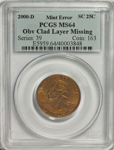2000-D 25C South Carolina Quarter--Obverse Clad Layer Missing--MS64 PCGS
