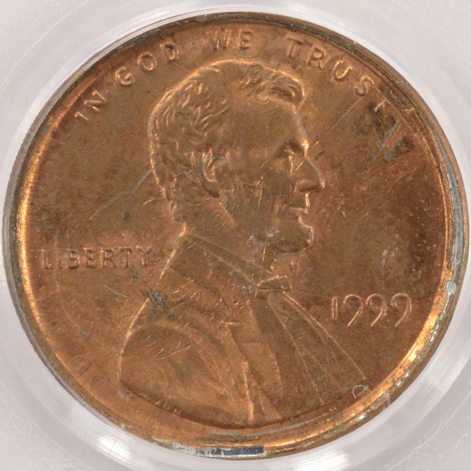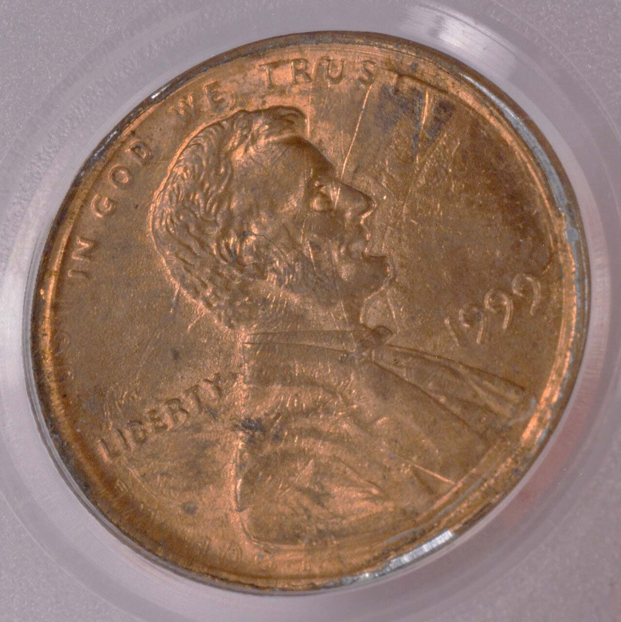 Overstrikes are coins that have been struck over a struck coin. Most of these are double denominations (a Lincoln Cent struck over a struck Dime, or a Jefferson Nickel struck over a struck Cent). This 1999 Lincoln Cent struck over a 1996 Lincoln Cent is referred to as a Dual Date on the same denomination, which is extremely rare.