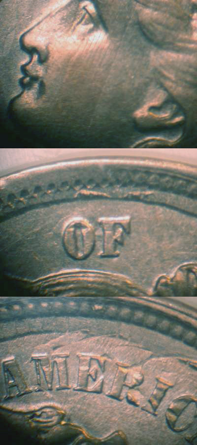 It is a flip-over double strike and much detail is visible from the original strike on both sides. A spectacular major mint error on an early type coin.
