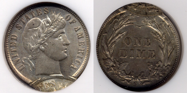 There are a few known double struck Barber Dimes that were struck at the Philadelphia Mint. This one is rare since it has the S-Mint mark from San Francisco.
