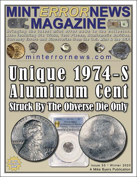 In the collection were incredible proof errors that were double denominations, mated pairs, dramatic and spectacular unique mint errors including the famous 1970-S Quarter struck on a Barber Quarter certified by NGC as PR 65. Also in this collection was the now world famous 1970-S Quarter struck on a 1941 Canadian Quarter which went viral worldwide on the internet, TV, print and in magazines. In addition, there were several unique and exotic mint state errors in the collection that were unknown types of errors including a unique mint state Roosevelt Dime struck with two reverse dies, which was subsequently certified by PCGS. Creating a 1974 San Francisco aluminum cent was not out of the realm of possibilities given the fact that unique mint errors were being intentionally struck in the San Francisco Mint and had assistance leaving the Mint as well.