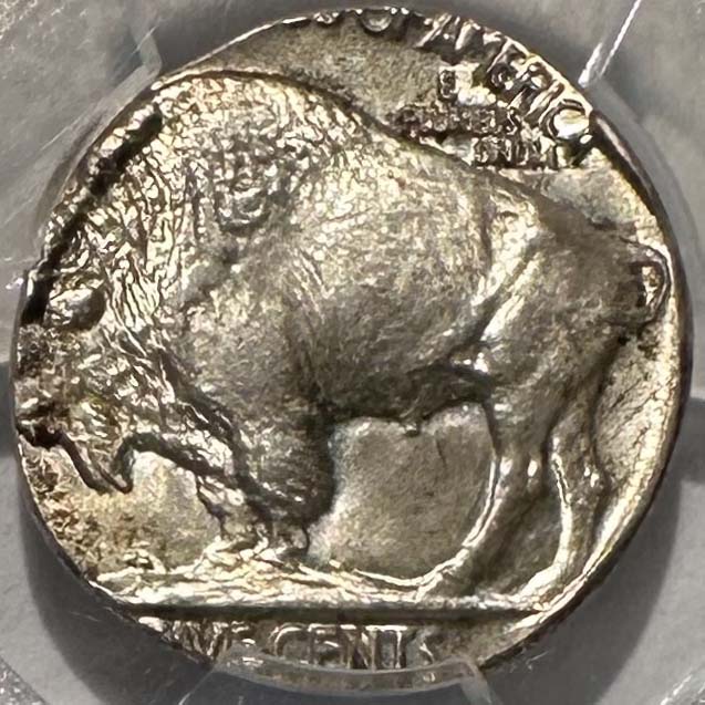 This rare Buffalo Nickel off-metal was discovered and certified in late 2025. It was in an old-time mint error collection with a few other rare off-metal type coins. It is in gem mint state condition, fully struck, with light original toning and incredible luster.