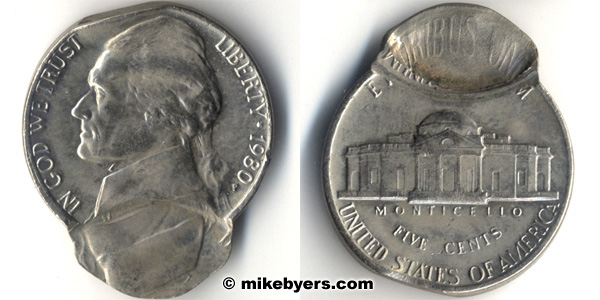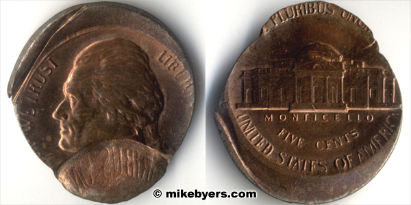 Visually it is spectacular since the copper Jefferson Nickel is mated to a Jefferson Nickel on a nickel blank.