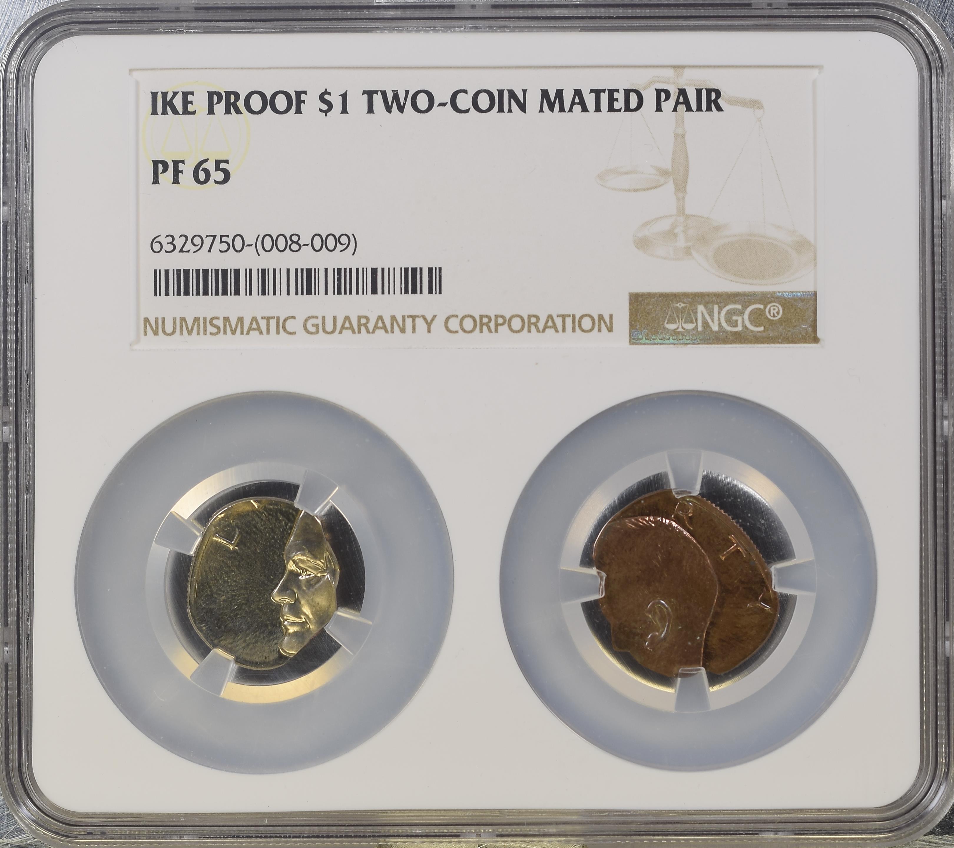 Proof Ike Dollar Mated Pair Ike Dollar Struck on a 1¢ Planchet