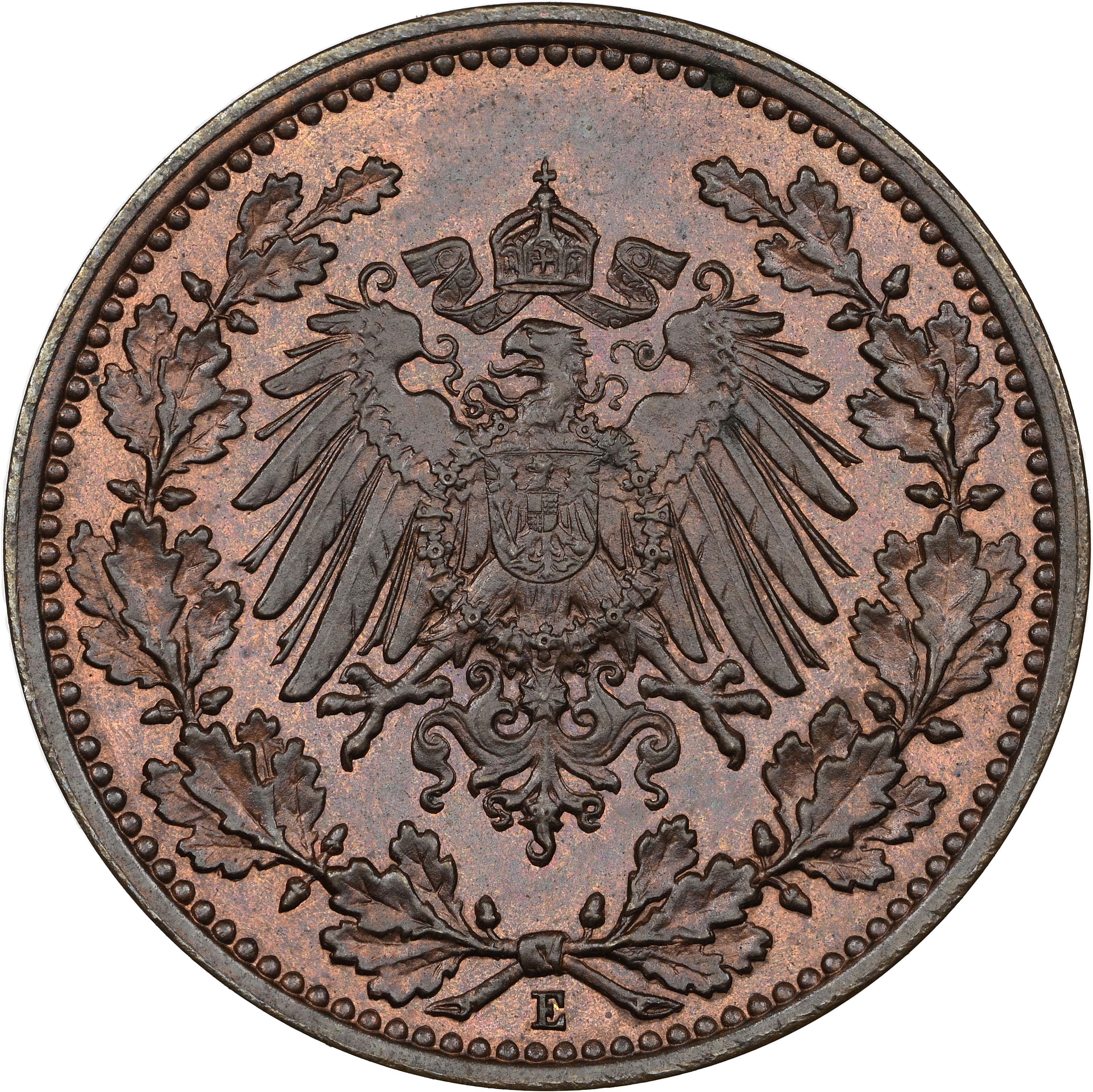 1906E Germany 2 Pfennig Muled With ½ Mark Obverse