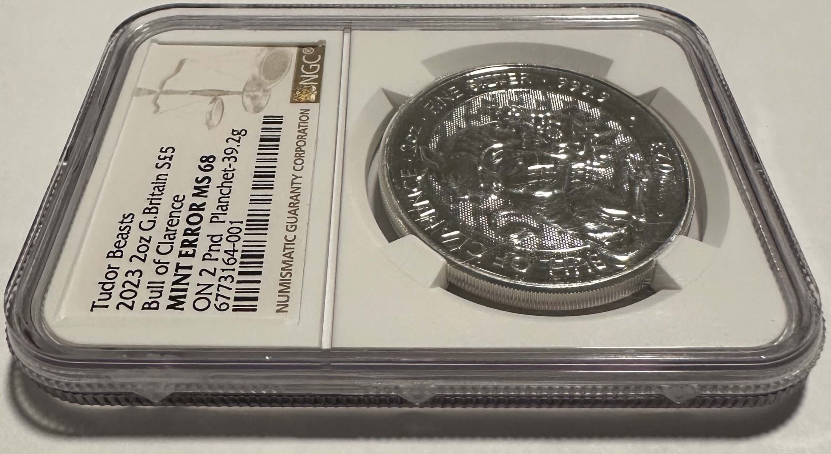 The 5 Pound 2oz Silver bullion coin was individually packaged in a single coin capsule by the Royal Mint. An eagle-eyed collector noticed that the weight was approximately 50% and realized that he had an off-metal major mint error.