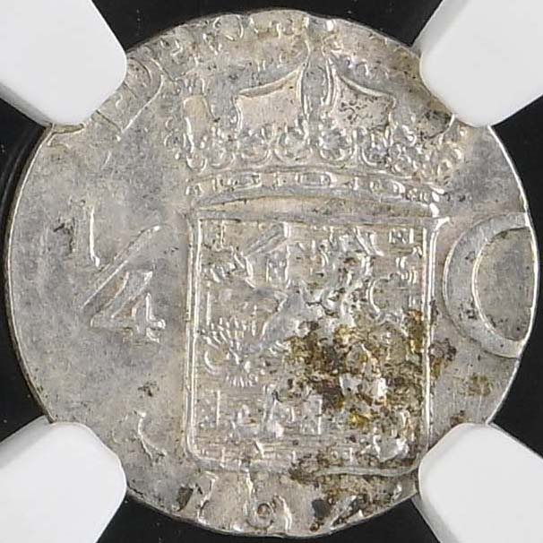 This is an extremely rare and fascinating major mint error off-metal from the Philadelphia Mint. The U.S. Mints in Philadelphia and San Francisco struck the Netherlands East Indies 1/4 Gulden and 1/10 Gulden coinage during World War II. Experts in the U.S. and the Netherlands were consulted as well as searching through auction house catalogs and reference books and it appears that there are four known.