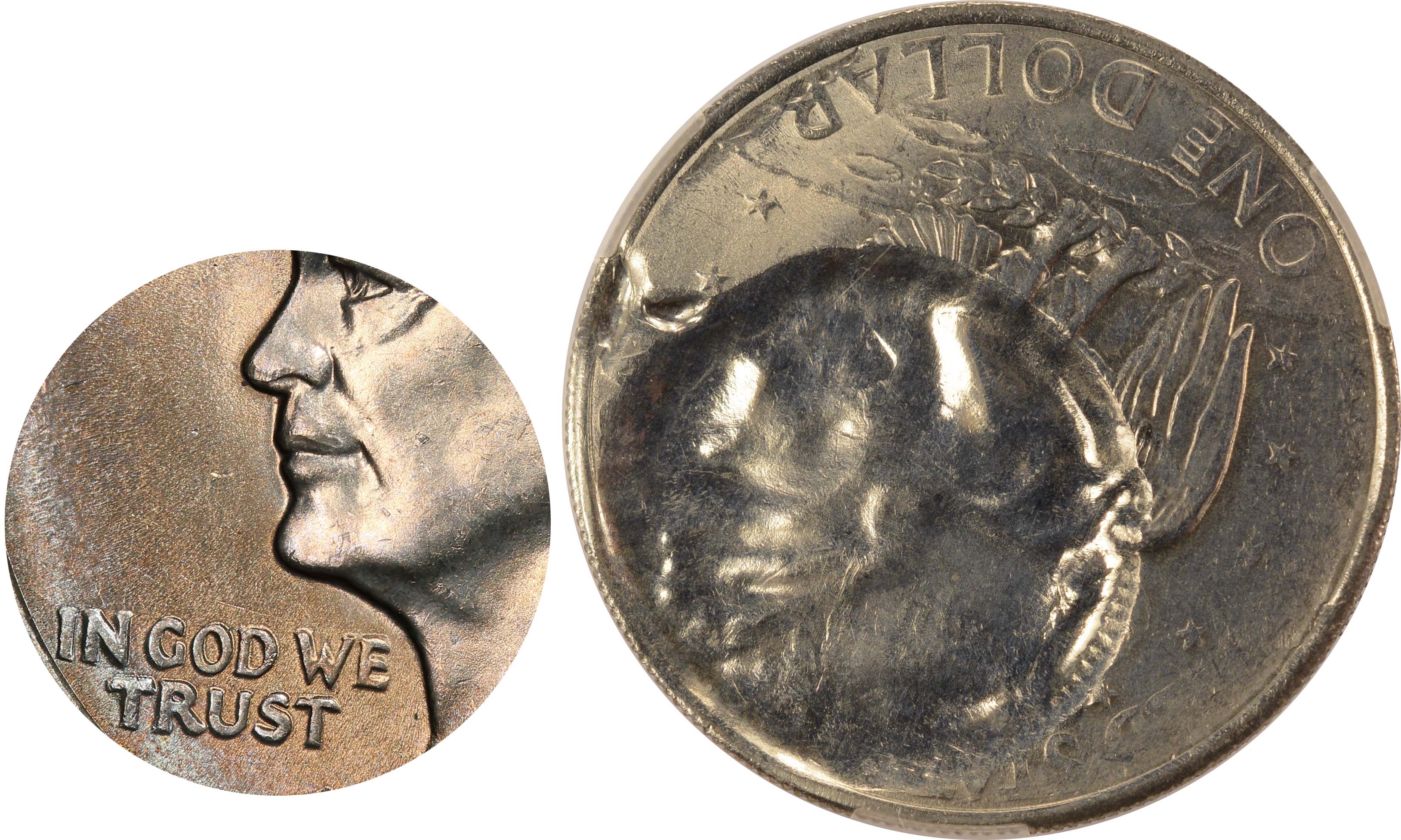Here is a rendering showing the enhanced detail of the brockage from the Ike Dollar on the 10¢ planchet:![]() |