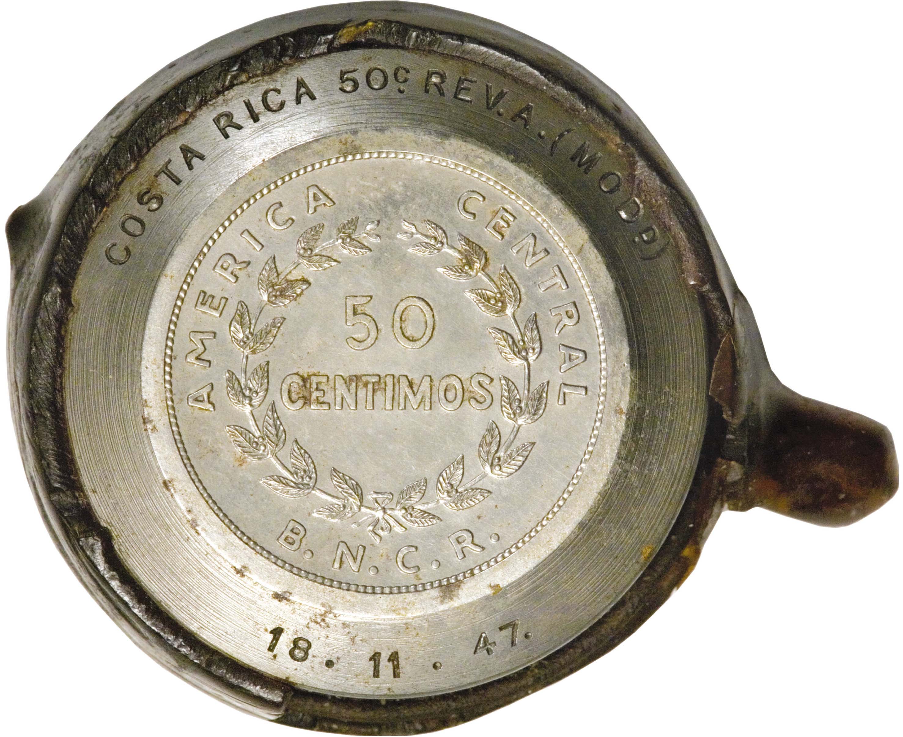 Here is a regular issued Costa Rica 1948 50 Centimos coin: