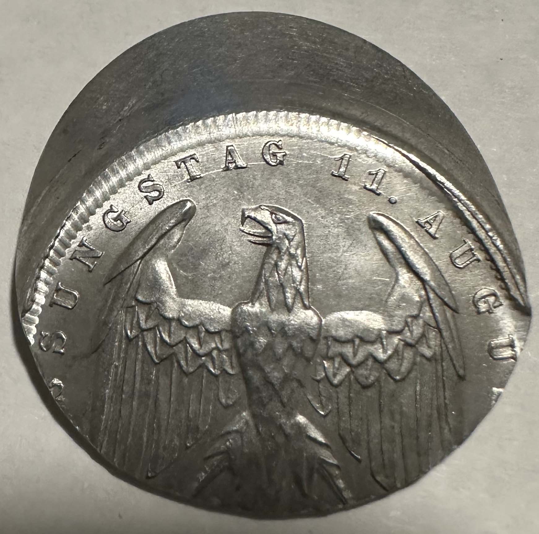 3rd Anniversary Weimar Constitution Reverse Die Cap and 40% Off-Center