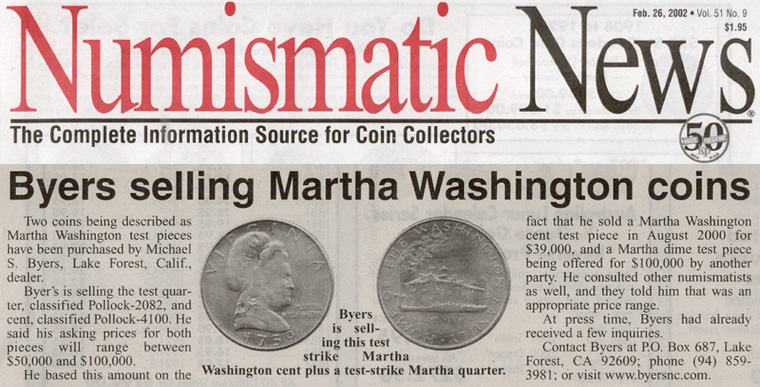 The evolving story about the Martha Washington Dies, test strikes and the discovery of these pieces is among the most interesting Numismatic stories in decades.