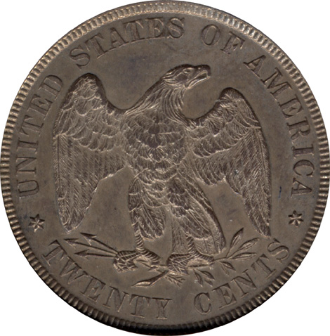 This is a unique discovery. This 20¢ Piece was double struck and the obverse rotated between strikes. Upon close examination much of the detail of the original strike is present on the obverse.