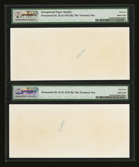 This however, is the very first set produced, and comes with the card which accompanied the set when it was presented to the Honorable Joseph E. Ralph, Director of the Bureau of Engraving & Printing, by Treasury Secretary Mc Adoo on December 21, 1914.