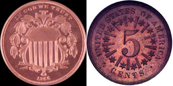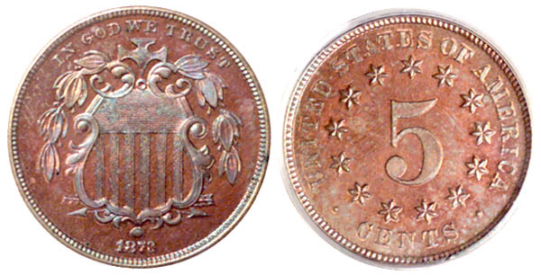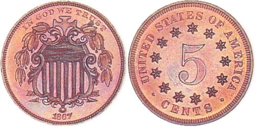 Shield nickels on cent planchets have often been mistaken for regular die trial pieces in various auction sales from the 1870’s to the early 1900’s. The following dates are recorded:
