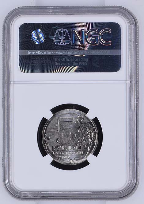 2015(M) RUSSIA 5R STRUCK ON A 2015 2R PLANCHET (5g)