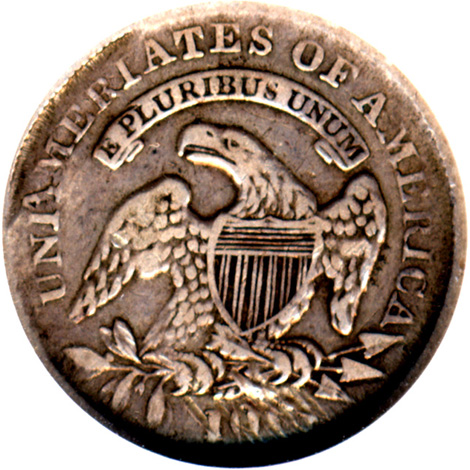 It is exciting to contemplate a bust silver coin that possesses, as this one does, 3 different error features, one on each side of the coin (partial brockage on the obverse, double striking on the reverse, partial collar on the edge). Even more remarkable, these error features were simply left “as is” on this coin, whereas most other early error bust silver coins were put back into the screw press, probably by hand, and struck again to try to hide their error features. This one escaped that fate. I would love to hear of others like it if they’re out there!