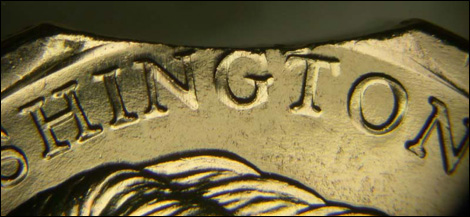 Photo #1b: George Washington $1 Coin, reverse with exploded view of edge lettering.