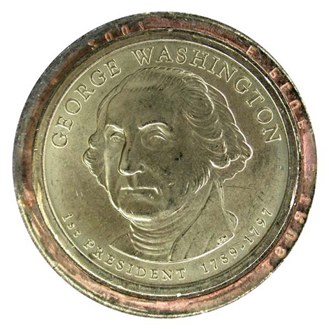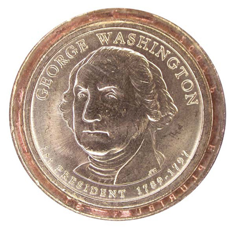 Another intriguing error in this series shows doubled edge lettering. This occurs when a coin passes twice through the edge lettering machine. Because this error appears to occur more frequently on the John Adams $1 than the Washington $1, detailed information can be found in our article on the second coin in the series, the Adams $1.
