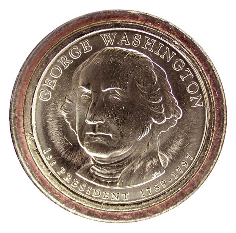 Photo #1a: George Washington $1 Coin, obverse with exploded view of edge lettering.