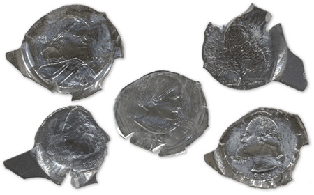 After a recent tour of the U.S. Mint at Philadelphia, it was discovered that the minting process had changed to some degree. One of the changes was that “feeder fingers” were used during the striking of all denominations of U.S. coins. Prior to this tour, U.S. coins that were struck on feeder finger tips were authenticated and described as being struck on aluminum scrap. Coins from all modern denominations have been discovered that were struck on the tips of these feeder fingers.