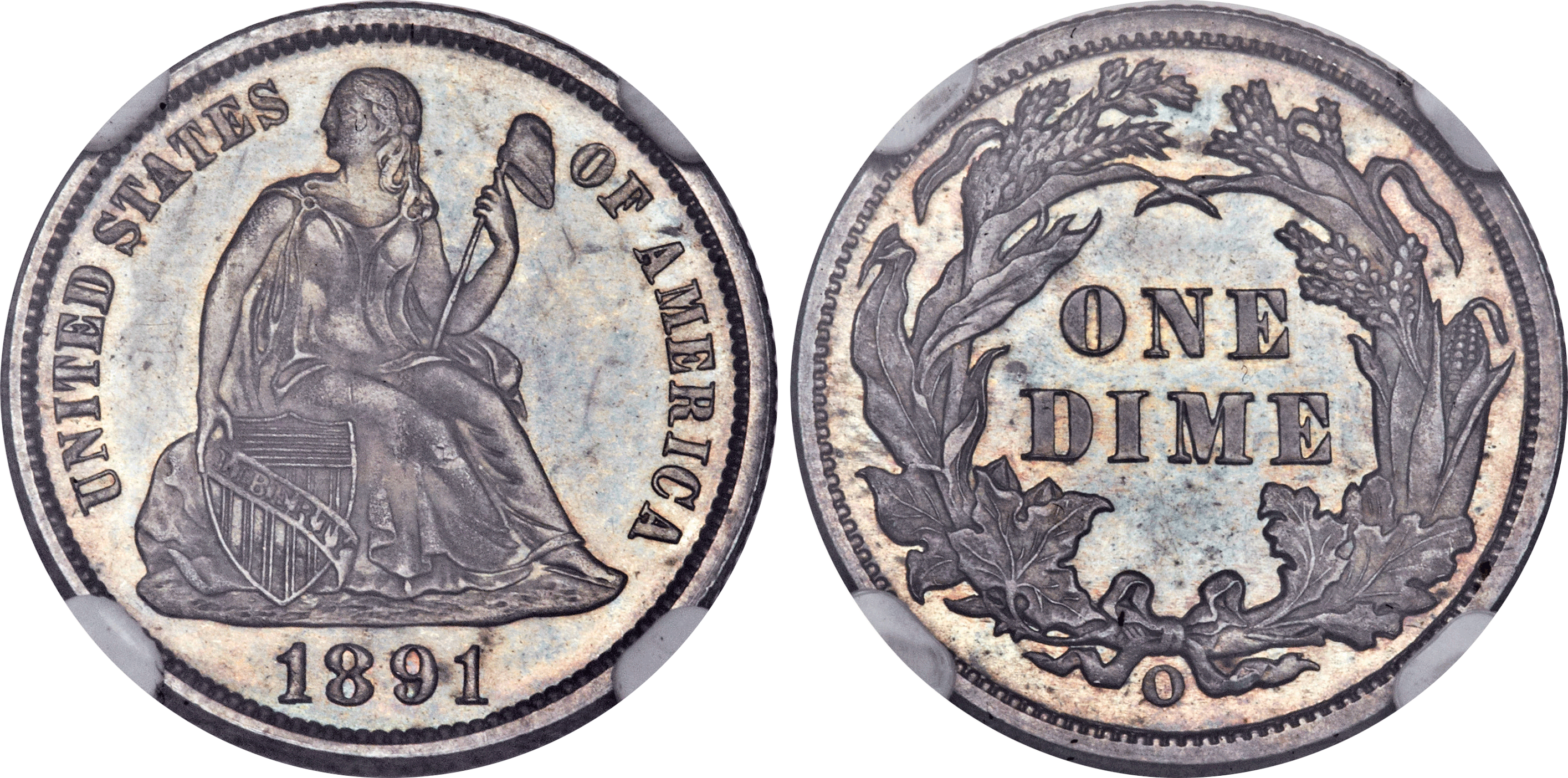 Here is the only known 1891-O Seated Liberty Dime struck in PROOF! Authenticated and certified by NGC as a Proof 66, this unique Branch Mint proof is a world-class rarity.