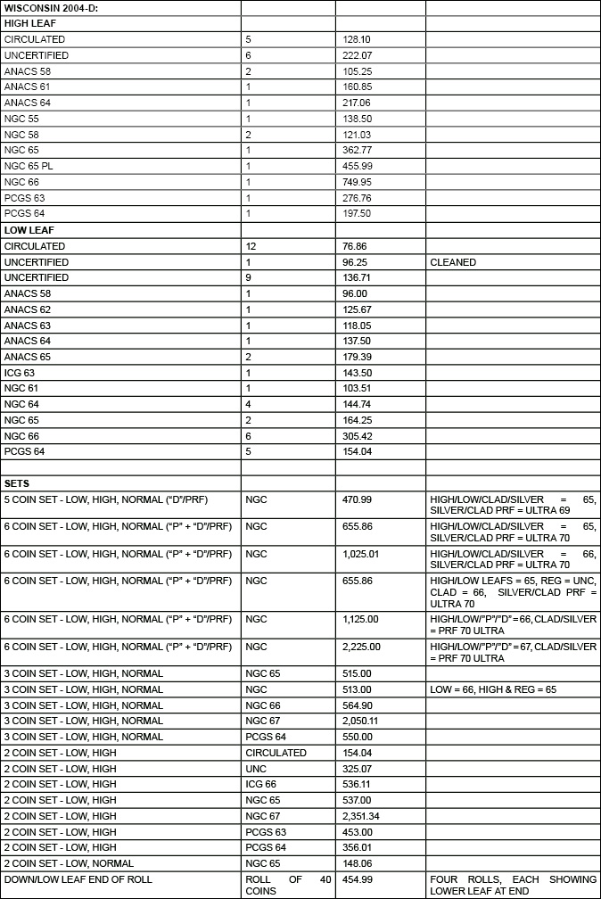 THE BUFFALO 5c “SPEARED BISON” & THE “WISCONSIN” 25c EXTRA LEAFS ARE EBAY ONLY SALES. DEALERS ARE STOCKING AND SELLING THESE AT SHOWS. PRICES HAVE COME DOWN. DEMAND HAS DIMINISHED.