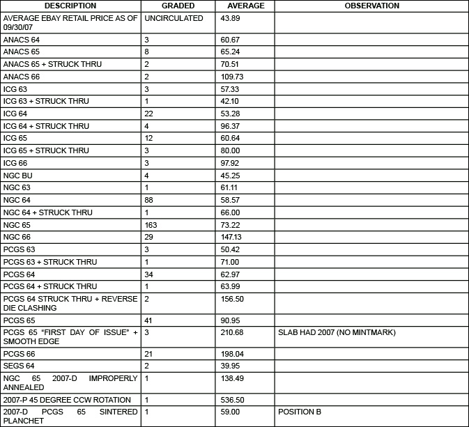 Editor’s Note: THE FOLLOWING JAMES MADISON Dollar mint error WAS THE ONLY ONE SOLD on eBay from October 1, 2007 to December 31, 2007: