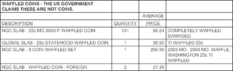 PLEASE NOTE: THE ERROR TYPES LISTED BELOW WERE EBAY LOTS THAT CLOSED WITH A HIGH BIDDER. IF THE RESERVE PRICE WAS NOT MET, OR PICTURE WAS NOT ATTACHED, THEN I IGNORED THE AUCTION. FUZZY PICTURES, OR QUESTIONABLE DESCRIPTIONS ARE NOT INCLUDED.