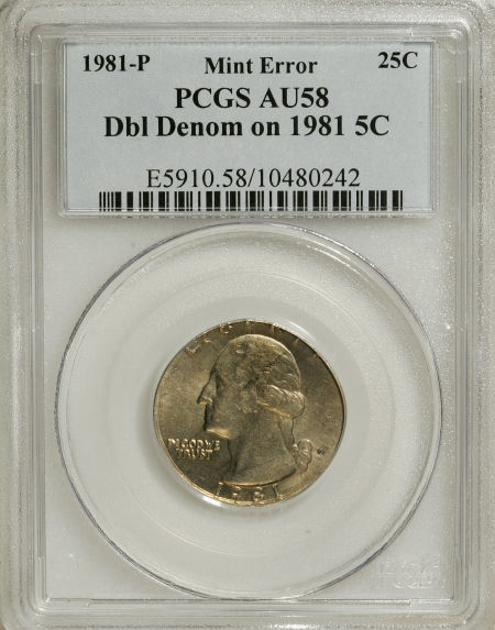 1981-P Washington Quarter--Struck on a 1981 Nickel--AU58 PCGS