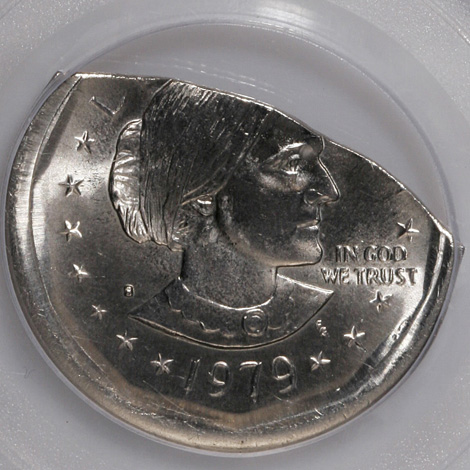 1979-S SBA$ Anthony Dollar--Broadstruck on a 33% Straight Clip Planchet--MS65 PCGS