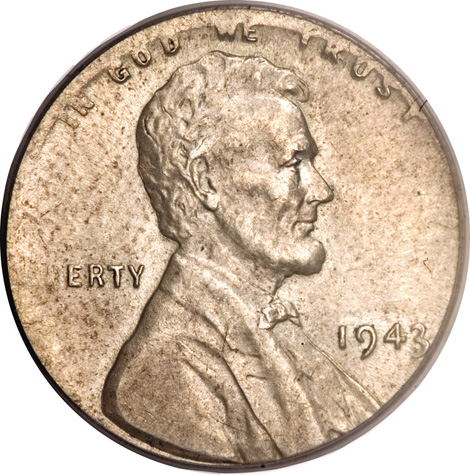 1943 1C Lincoln Cent--Struck on a Silver Dime Planchet--AU58 PCGS