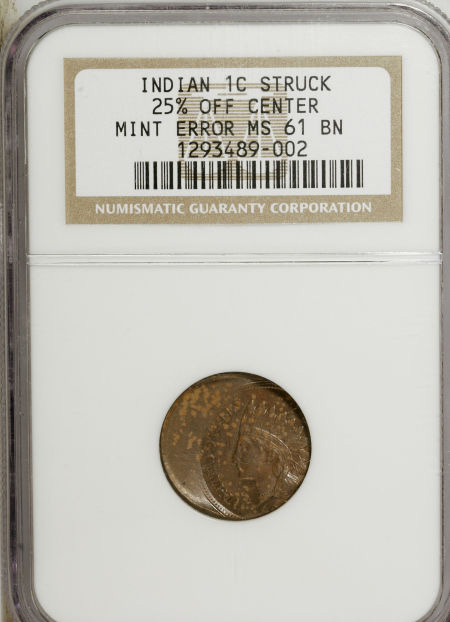 No Date 1C Indian Cent--Struck 25% Off Center--MS61 Brown NGC