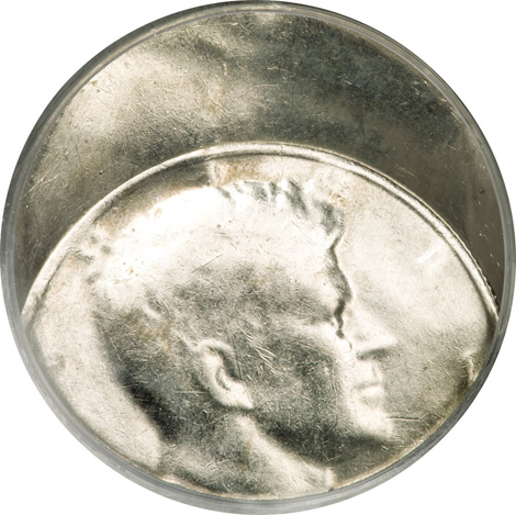 1921-S $1 Morgan Dollar--Double Struck, Second Strike 90% Off Center--AU58 PCGS