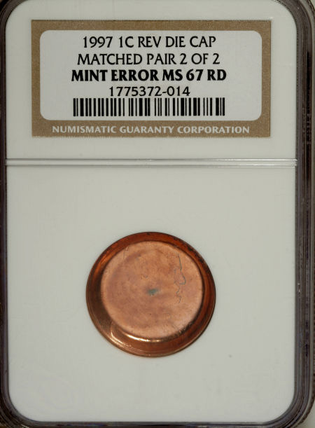 1997 1C Lincoln Cent--Obverse Die Cap, Matched Pair 1 of 2--MS68 Red NGC; and a 1997 Lincoln Cent--Reverse Die Cap, Matched Pair 2 of 2--MS67 Red NGC