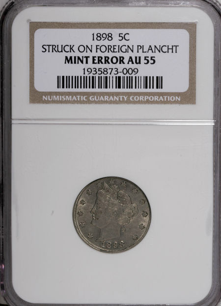1898 5C Liberty Nickel--Struck on a Foreign Planchet--AU55 NGC