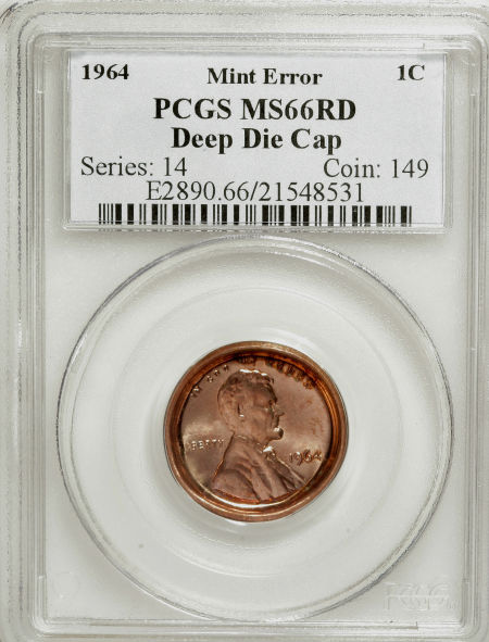 1964 1C Lincoln Cent--Deep Die Cap--MS66 Red PCGS