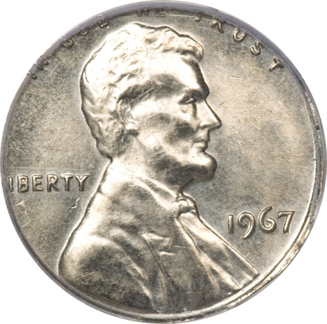 1967 Lincoln Cent 1C --Struck on a Clad Dime Outer Layer--MS64 PCGS